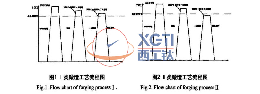 實(shí)驗(yàn)材料為TC4鈦合金,其主要合金成份見表1,相變點(diǎn)為980℃±10℃。合金鑄錠為中460mmx1350mm,首先相變點(diǎn)以上溫度1165℃±15℃范圍內(nèi)采用大變形量開坯,充分破碎鑄造晶粒并使組織進(jìn)一步均勻化,而后鋸床下料。選用8件坯料進(jìn)行鍛造工藝摸索,坯料均由兩火次鍛造成型,并調(diào)節(jié)每火次的加熱溫度及變形量,考察加熱溫度及變形量對顯微組織及力學(xué)性能的影響。鍛件最終均在780℃保溫處理1小時(shí)后空冷,觀察各種鍛造工藝下的顯微組織,并測試其拉伸性能。西工鈦合金作為鈦合金材料專業(yè)制造商,在近20年中,專業(yè)提供鈦棒、鈦合金鍛件、鈦板等加工制造,產(chǎn)品有企標(biāo) QB、國標(biāo)GB、美標(biāo)ASTM、AMS系列,通過實(shí)踐整理出行業(yè)所需鈦鍛環(huán)、鈦餅材等鍛件的國家執(zhí)行標(biāo)準(zhǔn)。